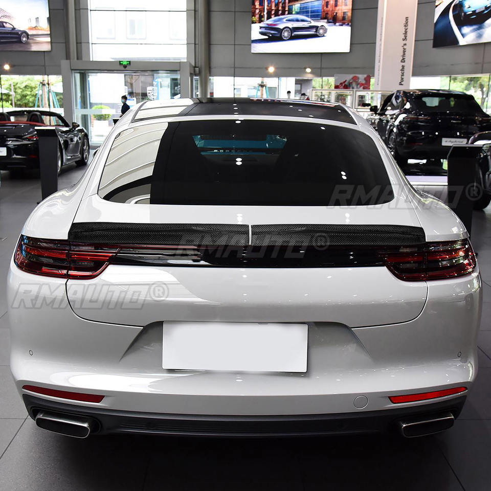 สปอยเลอร์หลังคาร์บอนไฟเบอร์แท้ 2 ชิ้น สำหรับตกแต่งฝากระโปรงท้ายรถยนต์ Porsche Panamera 971 Turbo ปี 2018 2019 2020 2021