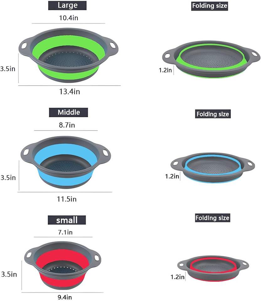 กระชอนซิลิโคน2ชิ้น/เซ็ตพับได้พร้อมที่จับตะกร้าล้างผักผลไม้