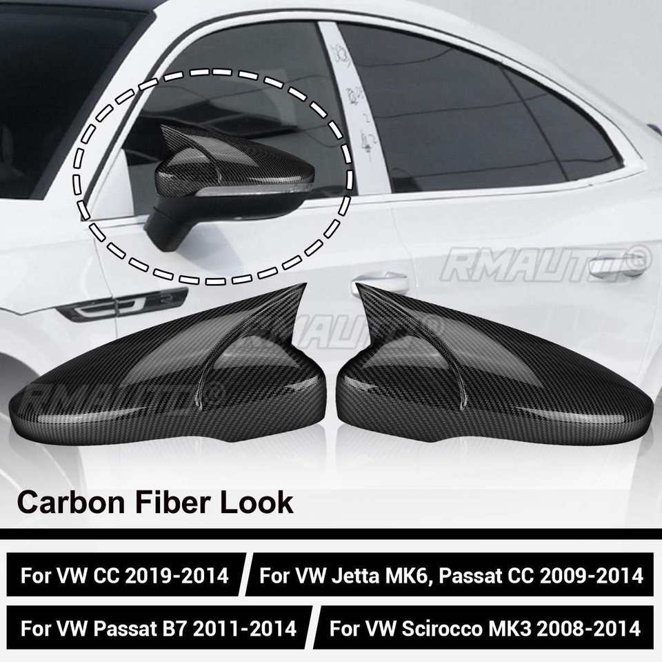 ฝาครอบกระจกมองข้าง 2 ชิ้น สีดำเงา สำหรับรถยนต์ VW Jetta MK6, Passat B7 และ Scirocco CC