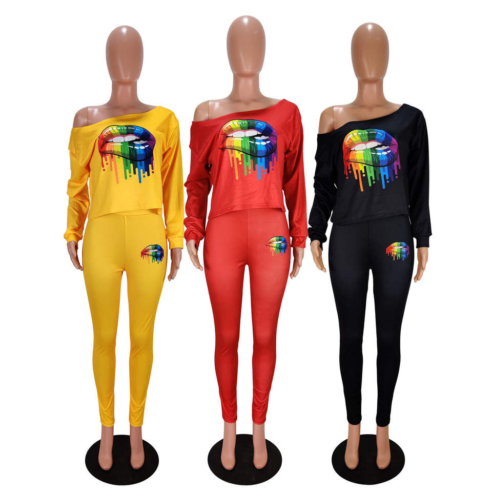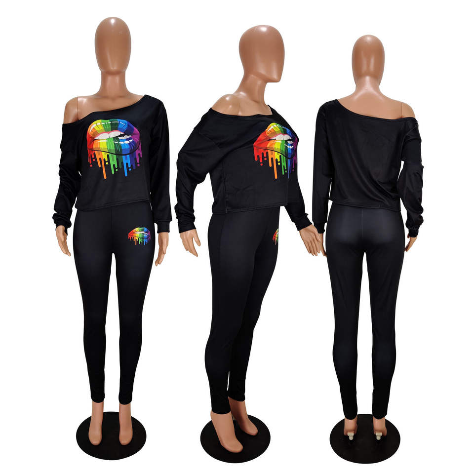 ชุดลำลองผู้หญิงแบบมีฮู้ด 2 ชิ้น เสื้อครอปพูลโอเวอร์และกางเกงแทรคสูทพิมพ์ลาย ผ้าฝ้าย 100%