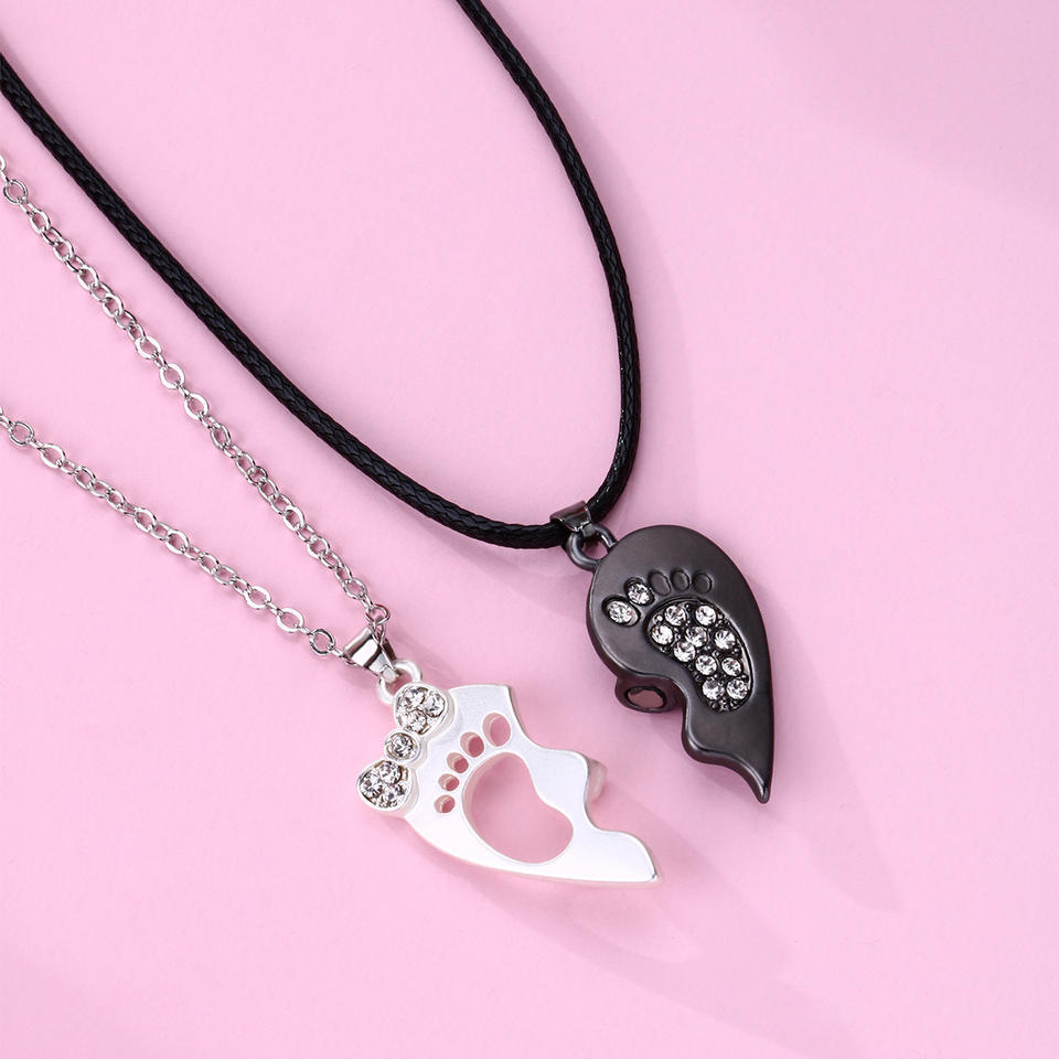 จี้หัวใจ2ชิ้น/เซ็ตสร้อยคอคู่สำหรับเขาและของขวัญวันวาเลนไทน์ของเธอเครื่องประดับสร้อยคอโชคเกอร์แม่เหล็กรูปรอยเท้า