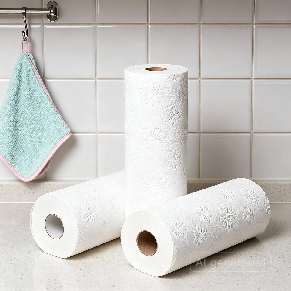 กระดาษเช็ดครัวแบบม้วน 2 ชั้น ดูดซับของเหลวได้รวดเร็วและไม่เป็นขุย สำหรับการทำอาหาร ทำความสะอาด และใช้บนโต๊ะอาหาร