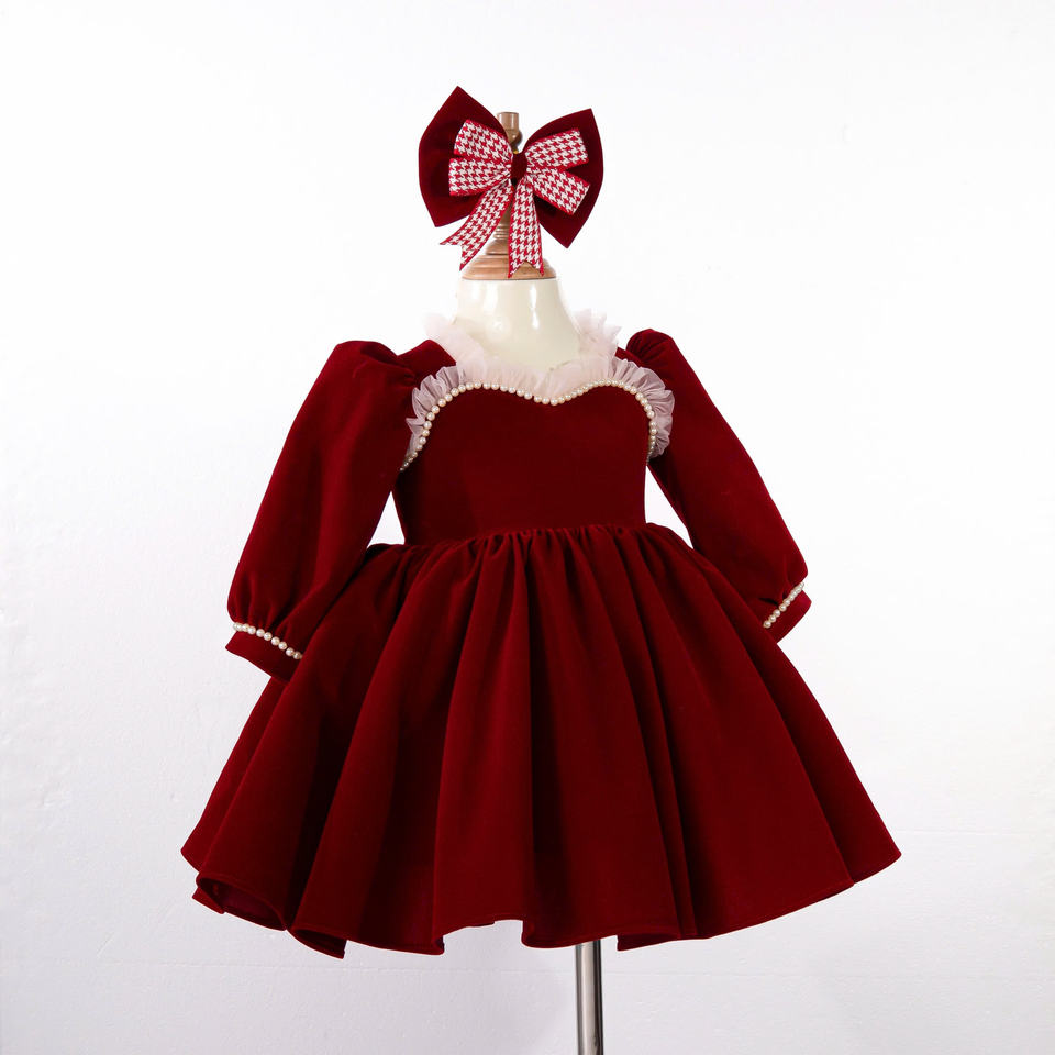 ชุดเดรสลูกไม้ปักผ้ากำมะหยี่2ชิ้นสำหรับฤดูหนาวของเจ้าหญิงสวมใส่สบายคุณภาพสูงหรูหรามีขนาดใหญ่พิมพ์ลายตัวยาว