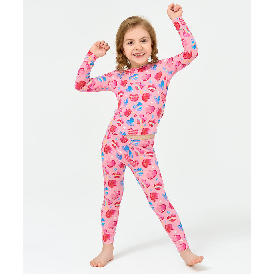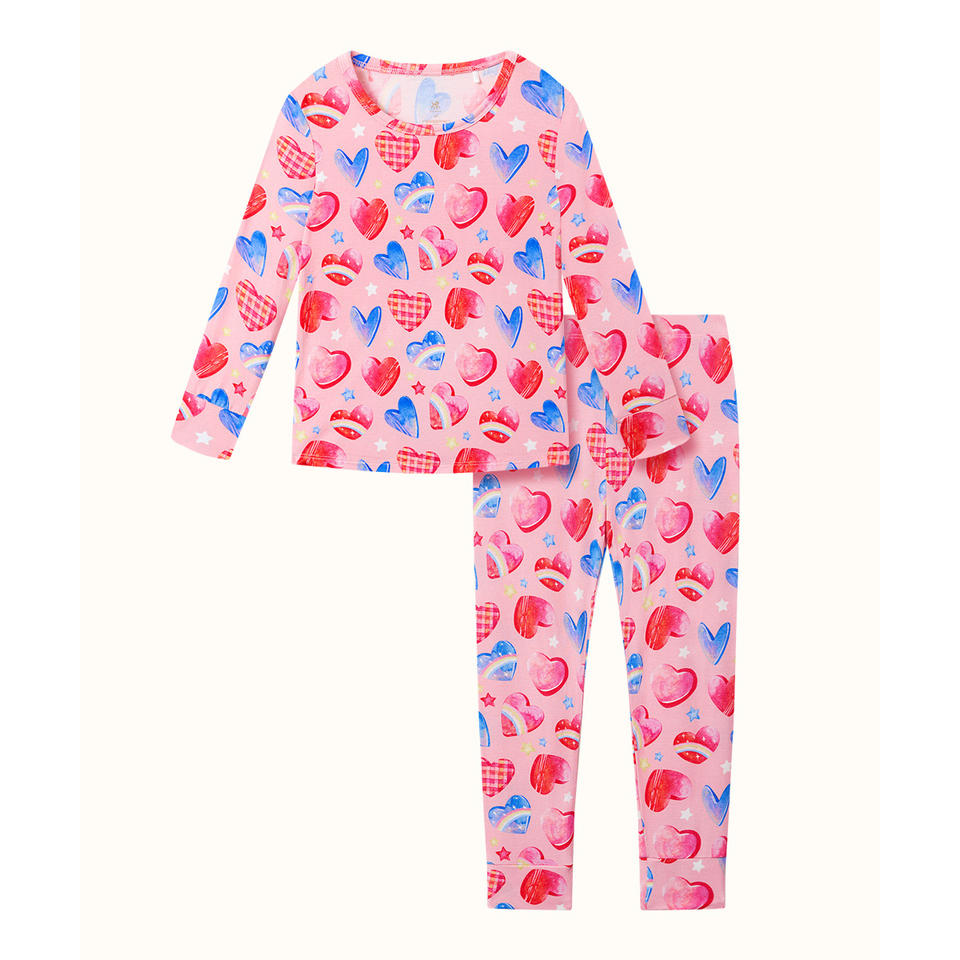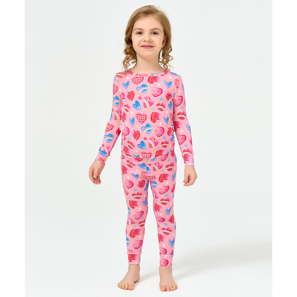 ชุดนอนเด็กผู้หญิง 2T-6Y เสื้อและกางเกงเข้ารูป ผ้าถักลำลองสำหรับฤดูใบไม้ผลิ