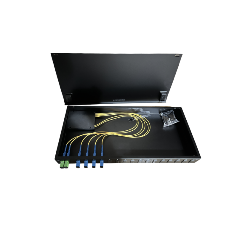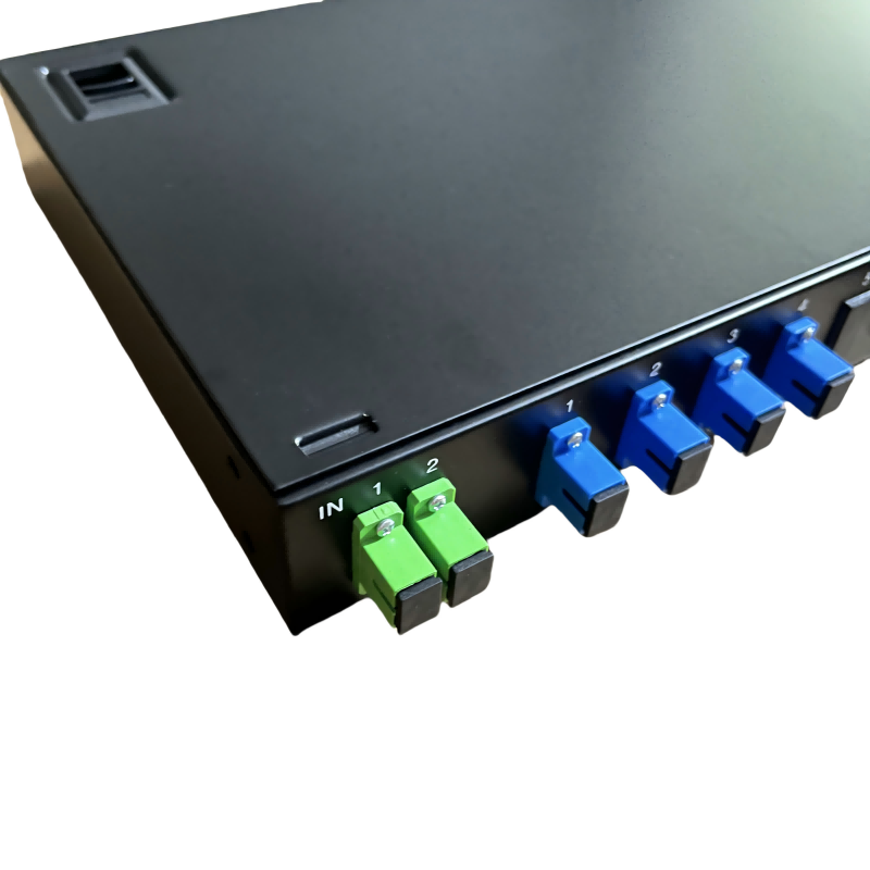 2X4ตัวแยกสายไฟเบอร์ออปติกแบบ2X32 FTTH 19 "แผงต่อสายไฟเบอร์ออปติกโลหะ1U SC LC APC กล่องตัวแยกสัญญาณ