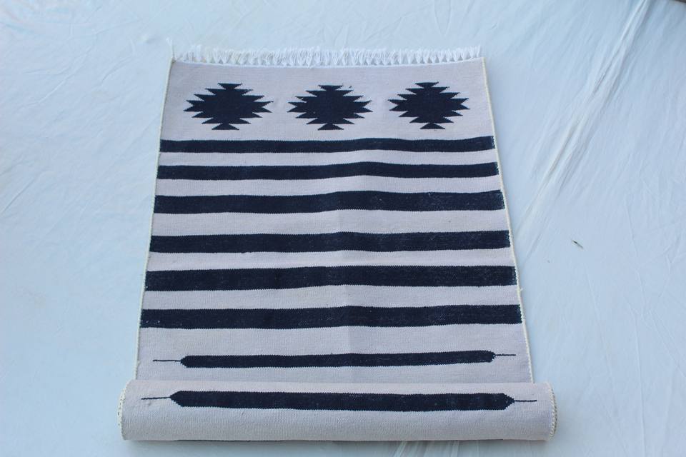 พรมผ้าฝ้าย2X6ทำด้วยมือแบบดั้งเดิมสำหรับใช้ในบ้านพรมเรขาคณิตแบบซักได้ขนาดใหญ่