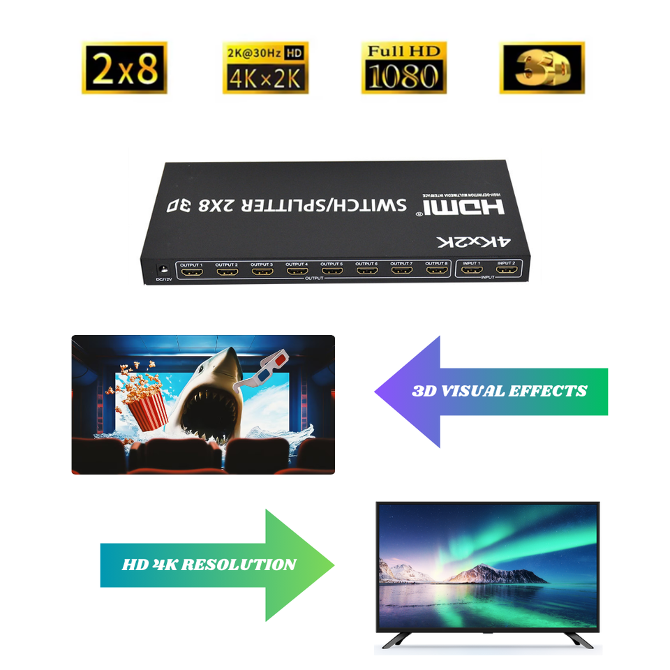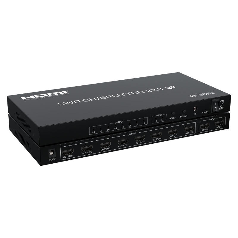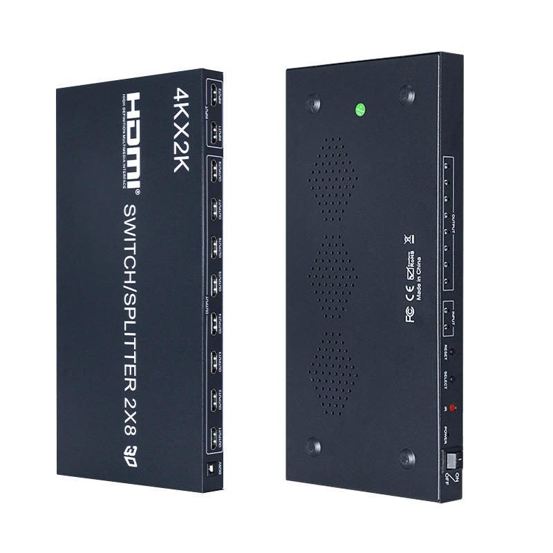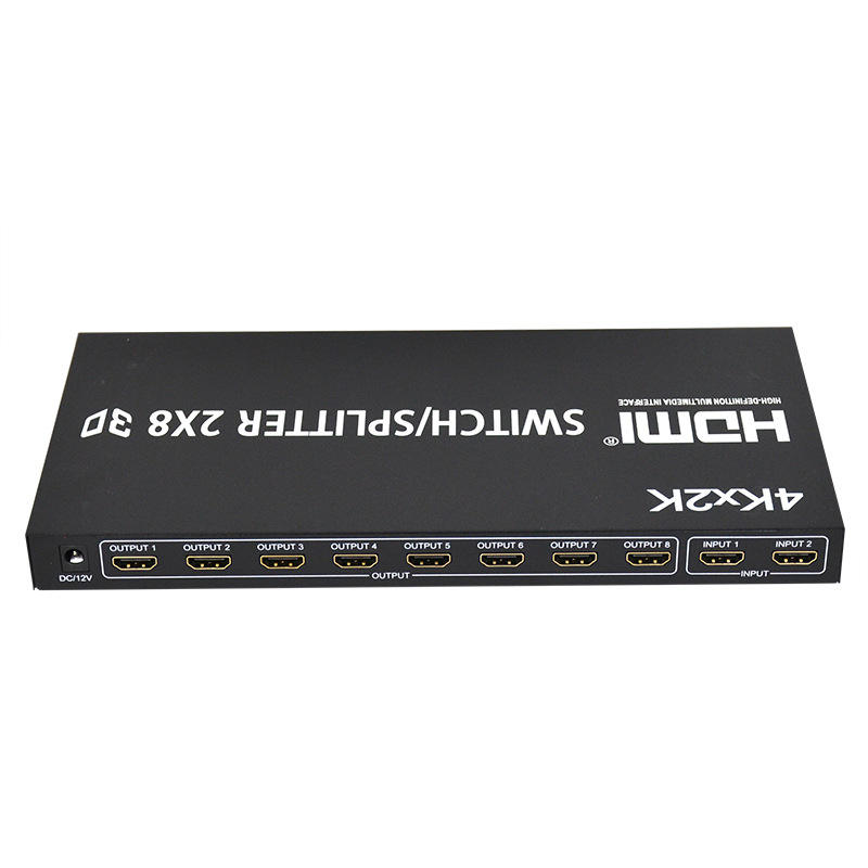 2X8ตัวแยก HDMI วิดีโอ3D 4K, สวิตช์ HDMI 2X8แยกหน้าจอคู่แบบ2 in 8ออกสำหรับ PS3 Xbox PC ไปยัง HD ทีวีโปรเจคเตอร์