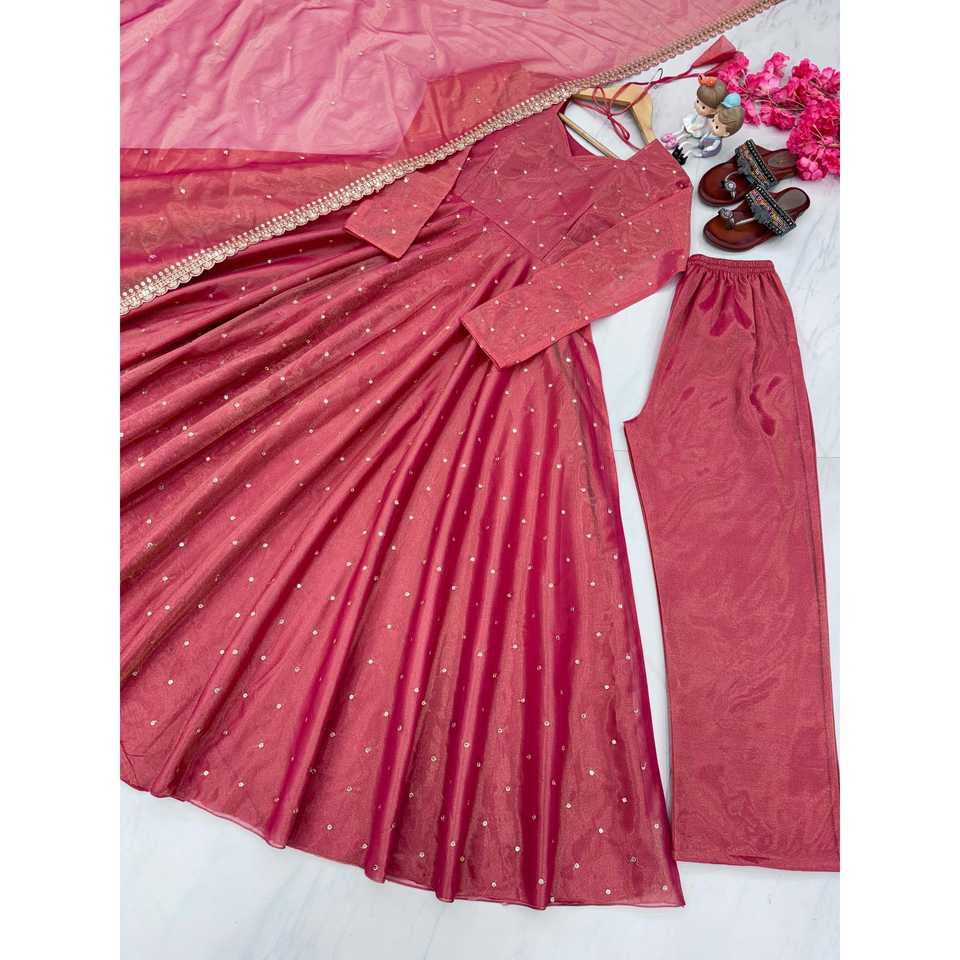ชุดเดรส Anarkali ไซส์ 2XL สำหรับงานปาร์ตี้ พร้อมผ้าคลุมไหล่และกางเกง Palazzo ให้ลุคที่ดูมีสไตล์