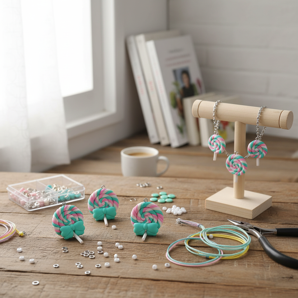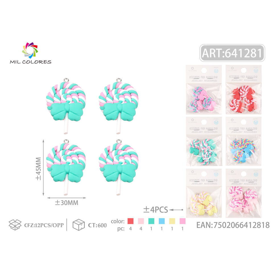 ชุดจี้อมยิ้มดินโพลิเมอร์ขนาด2ซม. 4ชิ้นสำหรับทำเครื่องประดับและส่วนประกอบ