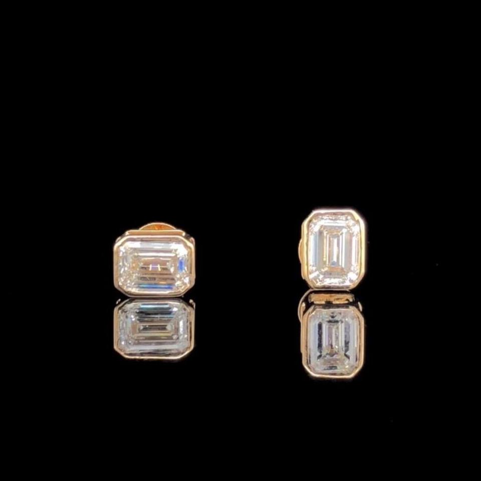 ต่างหูเพชรทรงเหลี่ยมมรกต 2 กะรัต เพชรเลี้ยงในห้องปฏิบัติการ ตัวเรือนทองคำชมพู 14K ดีไซน์เรียบหรู ของขวัญแต่งงาน เครื่องประดับสำหรับผู้หญิง