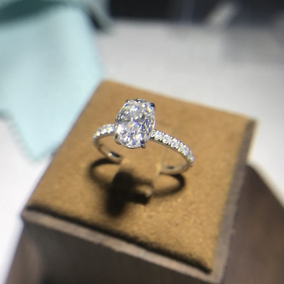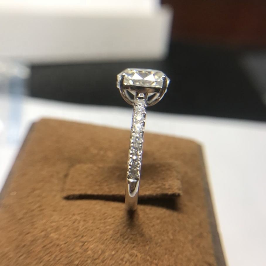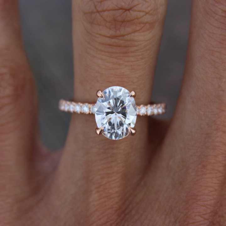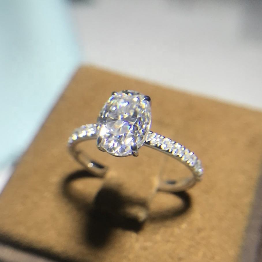 ชื่อ:แหวนแต่งงานทรงวงรีประดับมอยซาไนต์แบบน้ำแข็งบด ตัวเรือนทองคำขาว 14K