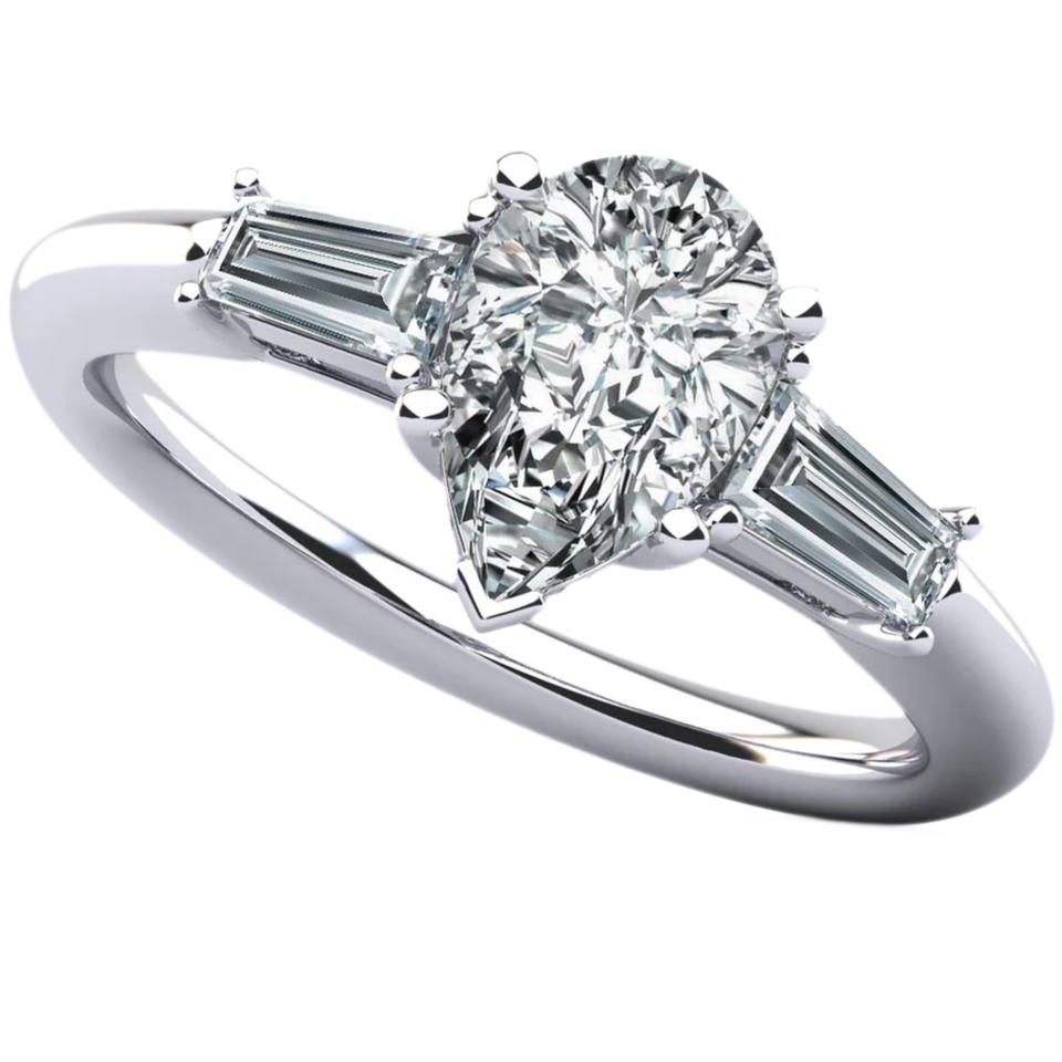 แหวนเพชรรูปลูกแพร์และบาแกตต์สำหรับสตรีที่ปลูกในแล็บ2ct ตัดด้วยหินสามก้อนแหวนหมั้นทอง14K สำหรับเครื่องประดับชั้นดีของผู้หญิง