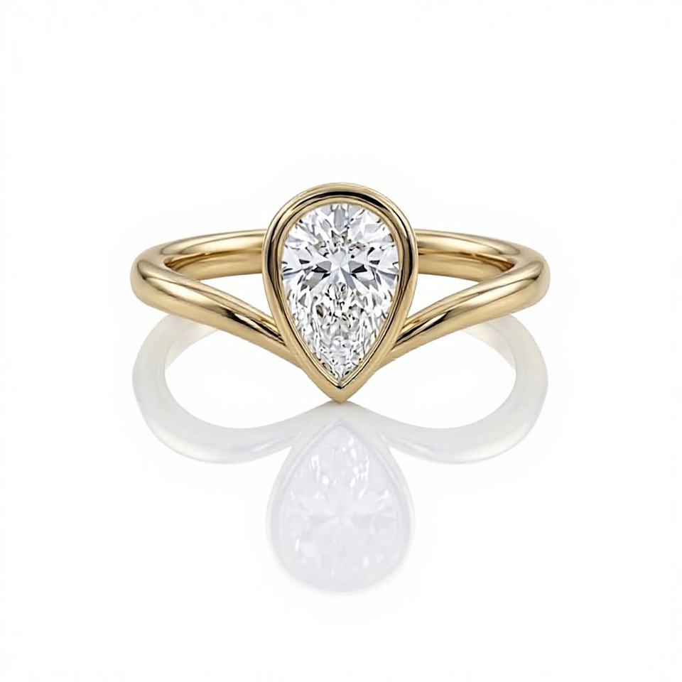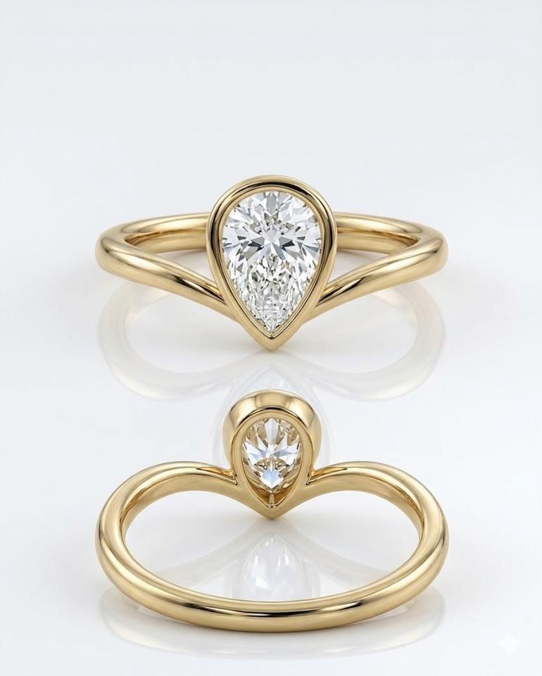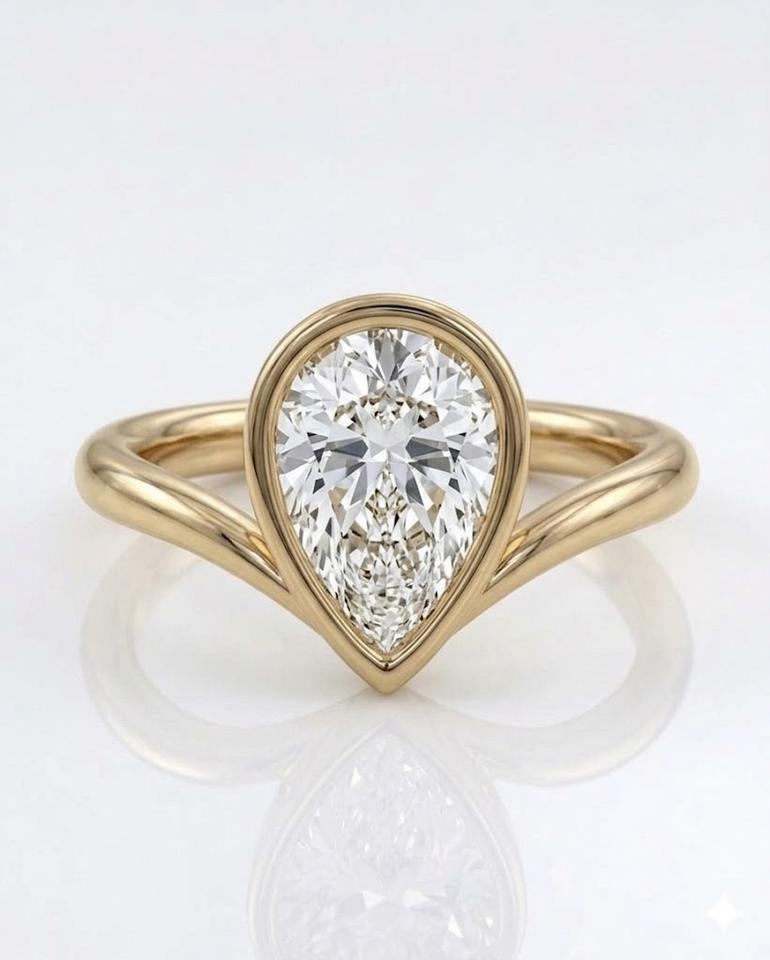 แหวนหมั้นเพชรทรงลูกแพร์ 2 กะรัต ขอบทอง 14K เพชรทรงลูกแพร์เพาะเลี้ยงในห้องปฏิบัติการ แหวนลายเชฟรอน แหวนแต่งงานทรงหยดน้ำแบบพิเศษ วงแหวนรูปตัววี