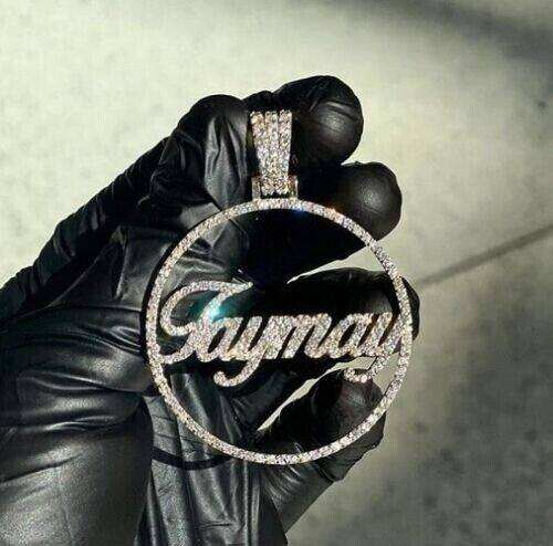 จี้โลโก้สั่งทำขนาด 2 นิ้ว | จี้ชื่อทรงกลมประดับเพชรโมอิสซาไนต์ เงินแท้ 925 ชุบทองคำสีกุหลาบ สไตล์ฮิปฮอป