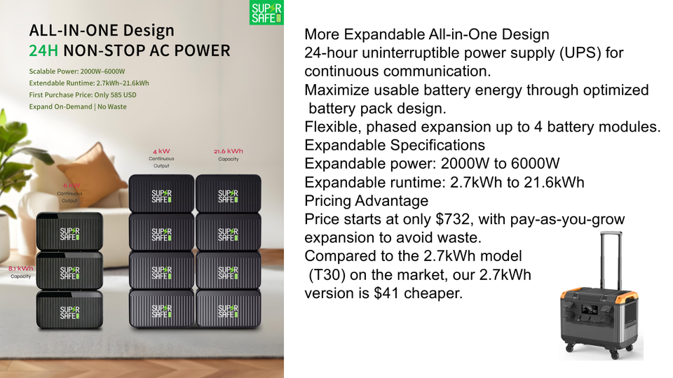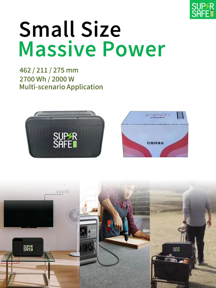 เครื่องกำเนิดไฟฟ้าพลังงานแสงอาทิตย์แบบพกพาสำหรับใช้ในบ้าน 2 กิโลวัตต์ชั่วโมง 3000-8000 วัตต์ ระบบออฟกริด รุ่น Supersafe T27 โครงสร้างโลหะ พร้อมพัดลม