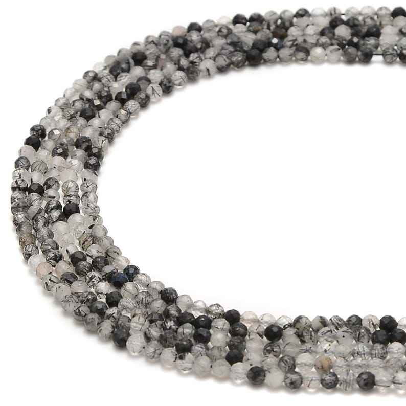 ลูกปัดพลอยเม็ดกลมขนาด2มม. 3มม. 4มม. สีดำธรรมชาติสำหรับทำเครื่องประดับลูกปัดหลวมขายส่งจากผู้ผลิต