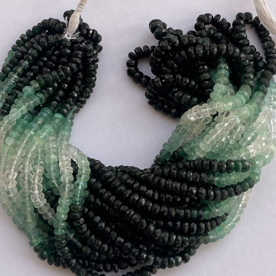 ลูกปัดมรกตเขียวธรรมชาติ โคลอมเบีย ไล่เฉดสีแบบออมเบร เจียระไนเหลี่ยมทรงรอนเดล