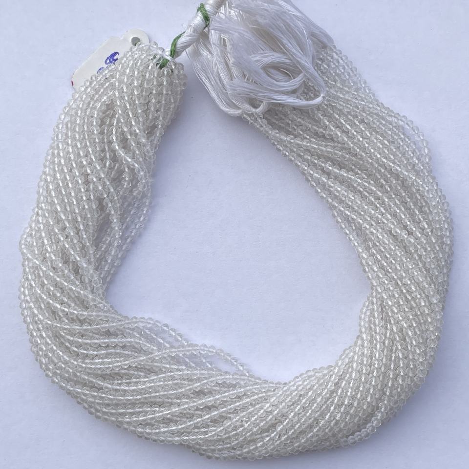 Natural Micro White Topaz Faceted Gemstone Beads Strand