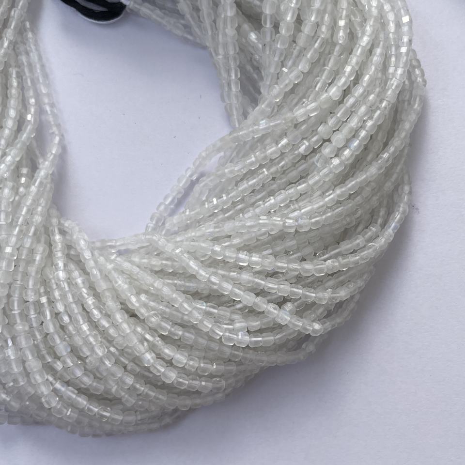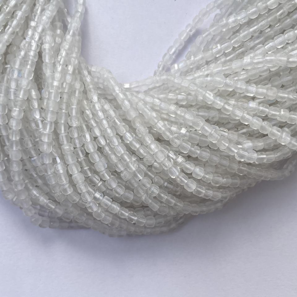 Natural Micro Rainbow Moonstone Stone Faceted Cube Box Beads