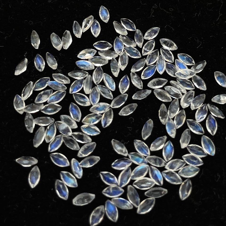 2 มม.4 มม.6 มม.สีฟ้าธรรมชาติ Rainbow มูนสโตน Marquise ตัดพลอยหลวมอัญมณีเครื่องประดับ DIY ทําแหวนจี้ต่างหูตา AAA