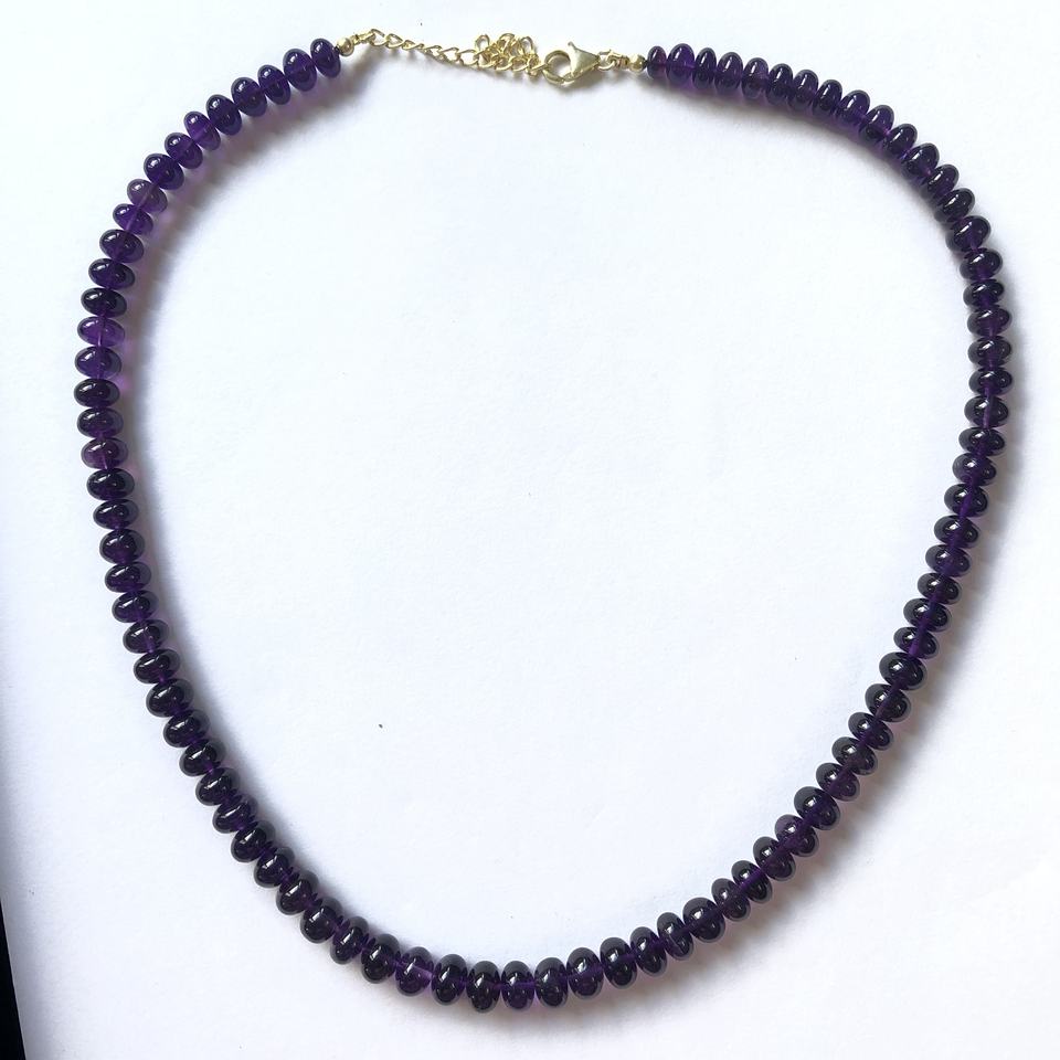 สร้อยคอลูกปัดแอฟริกันอเมทิสต์ทรงรอนเดลเรียบ พร้อมตัวล็อกเงิน
