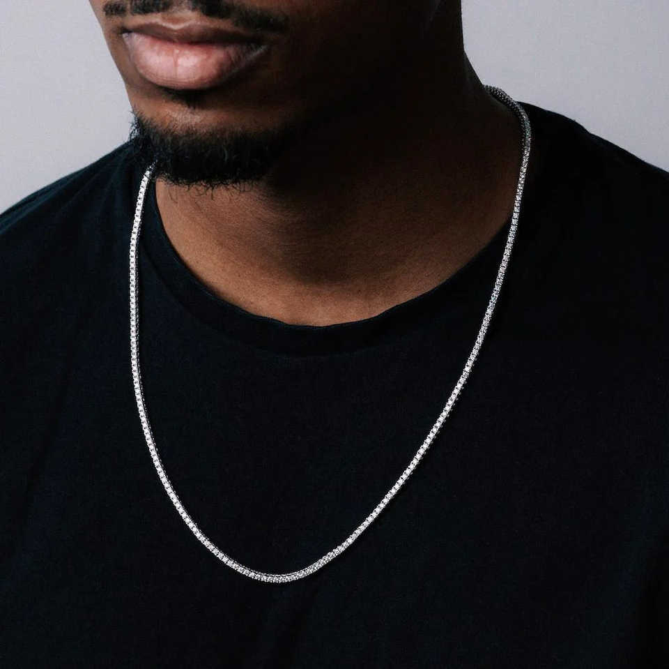 สร้อยคอเทนนิสโมอิสซาไนต์ 2 มม. เงินแท้ 925 ชุบโรเดียมและทองคำขาว ประดับเพชรแบบไอซ์เอาท์ สไตล์มินิมอล ฮิปฮอป ของขวัญ เครื่องประดับ