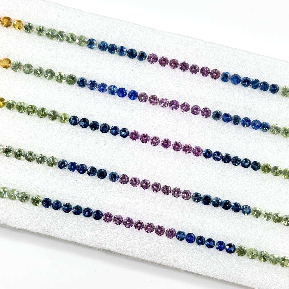 พลอยไพลินหลากสีธรรมชาติ 2 มม. ทรงกลมเจียระไนแบบบริลเลียนท์ สะอาดด้วยลูเป้ เหมาะสำหรับทำเครื่องประดับ ขายส่ง