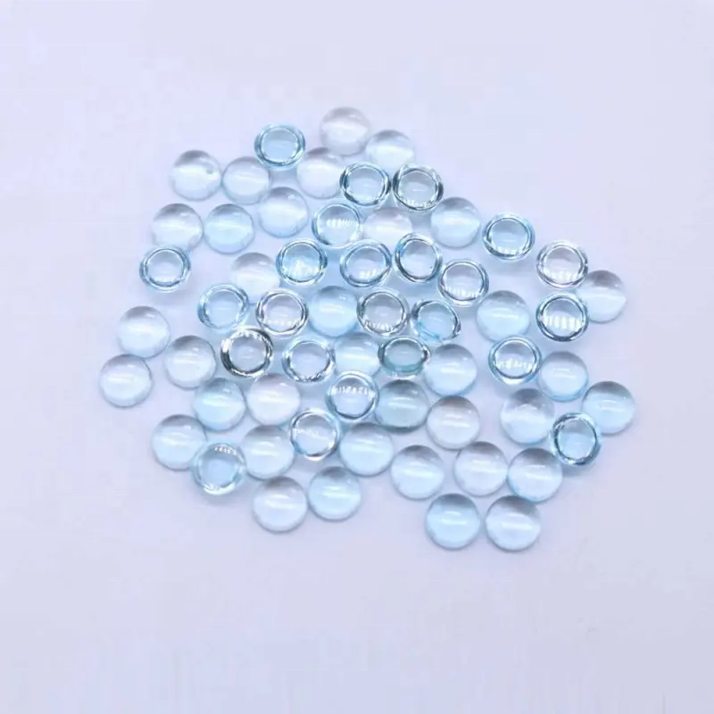 บุษราคัมสีฟ้าท้องฟ้าธรรมชาติ2มม. ด้านหลังเรียบทรงกลม Cabochon AAA อัญมณีหลวมได้รับการรับรองคุณภาพเครื่องประดับแฮนด์เมดราคาไม่แพง