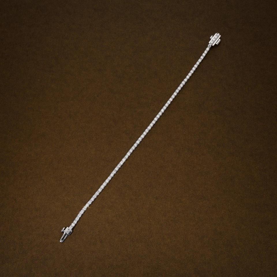 กำไลเทนนิสโมอิสซาไนต์ทรงกลมขนาด 2 มม. ไม่มีสี สำหรับเป็นของขวัญวันครบรอบ ทำจากเงิน 925 ประดับเพชรแบบ Iced Out ราคาประหยัด