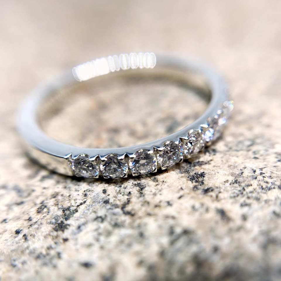 2มิลลิเมตรรอบตัดสีขาว CZ เต็มนิรันดร์แต่งงานแหวนเงินคลาสสิกวางซ้อนกันได้สัญญาเครื่องประดับ