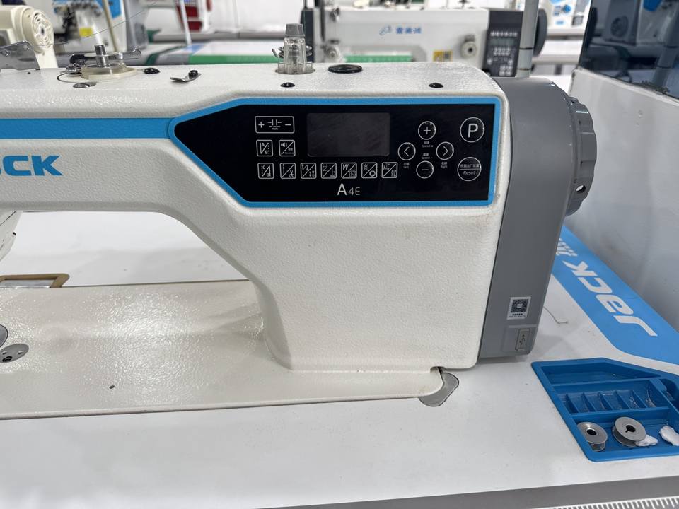 จักรเย็บผ้ามือสองความเร็วสูง A4E แบบล็อคสติทช์ คอมพิวเตอร์ควบคุม แบบเตียงราบ ตัดด้ายอัตโนมัติ ระบบขับเคลื่อนโดยตรง โครงสร้างโลหะ สำหรับงานตัดเย็บเสื้อผ้า