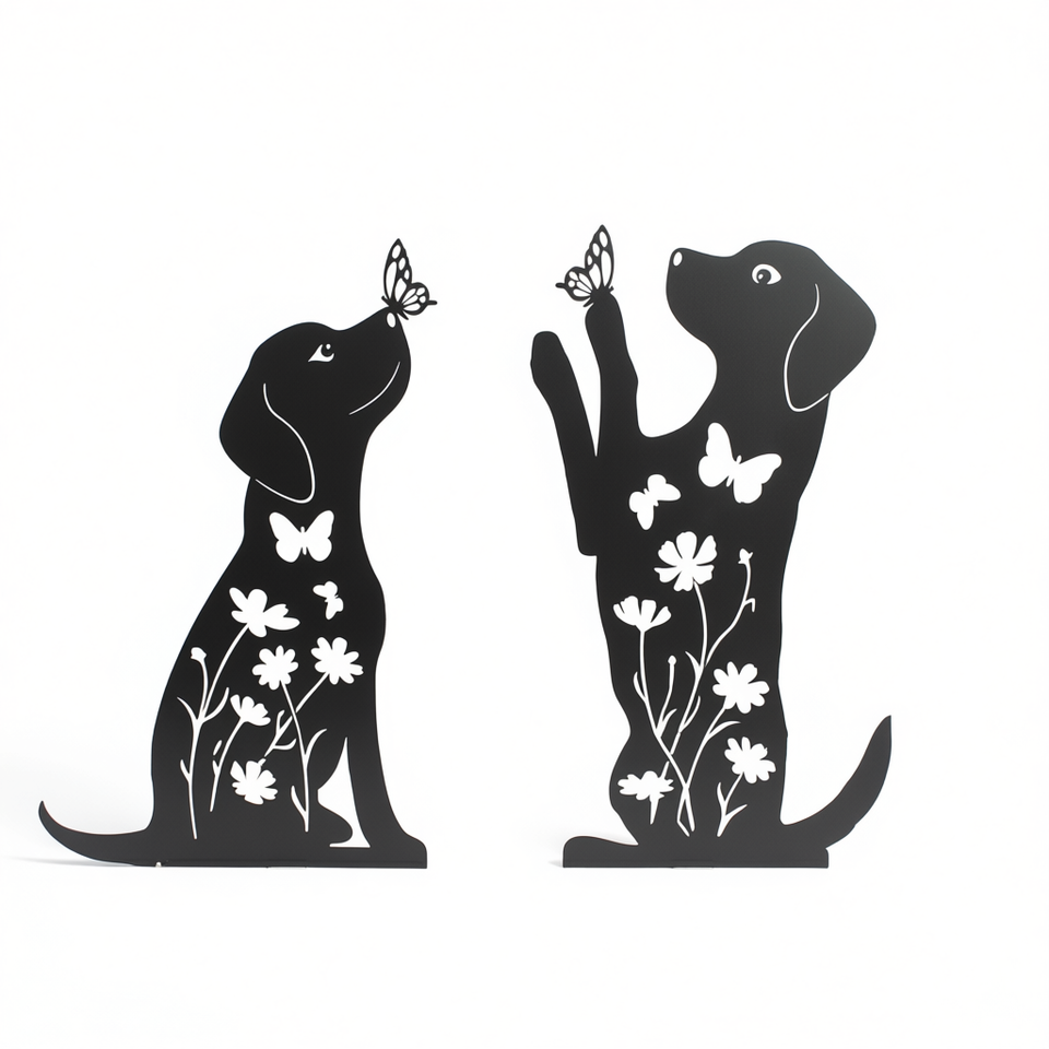 Metal Puppy Silhouette Garden Stakes Outdoor Yard Art Decor For Dog Lovers Adorable Floral Design Stake Style Decoration