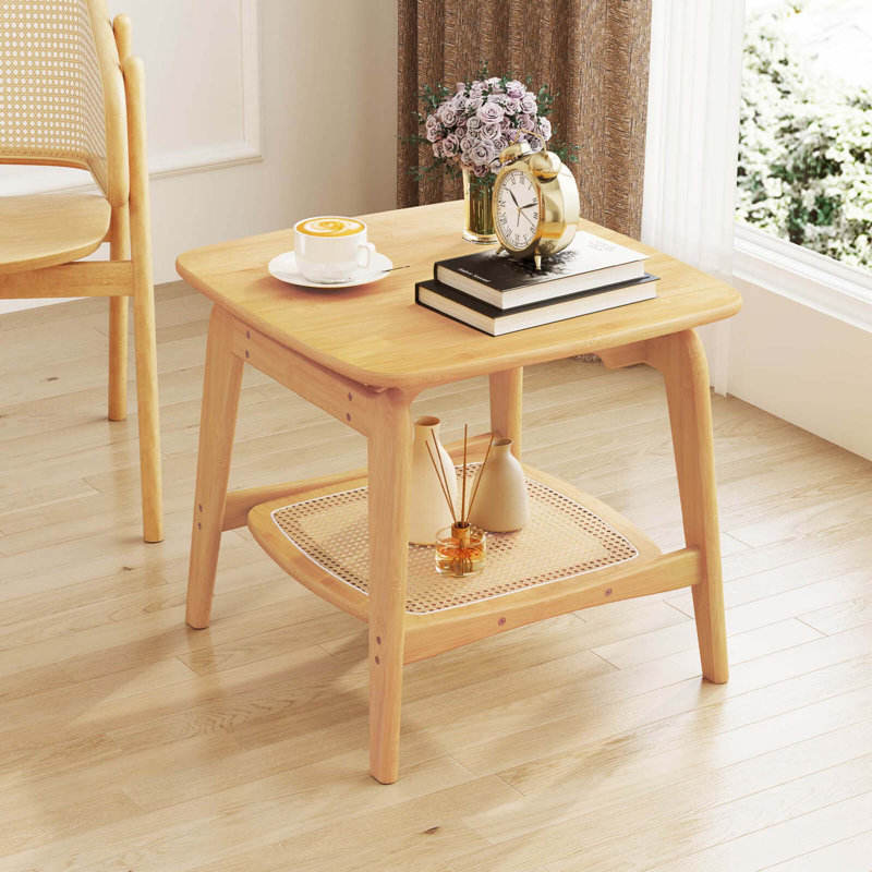 โต๊ะข้างเตียงแบบ Boho 2ชิ้นพร้อมชั้นวางหวายเทียมโต๊ะข้างโซฟาไม้ไผ่สำหรับเฟอร์นิเจอร์ห้องนั่งเล่น