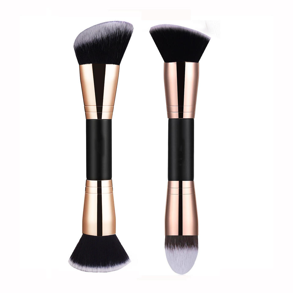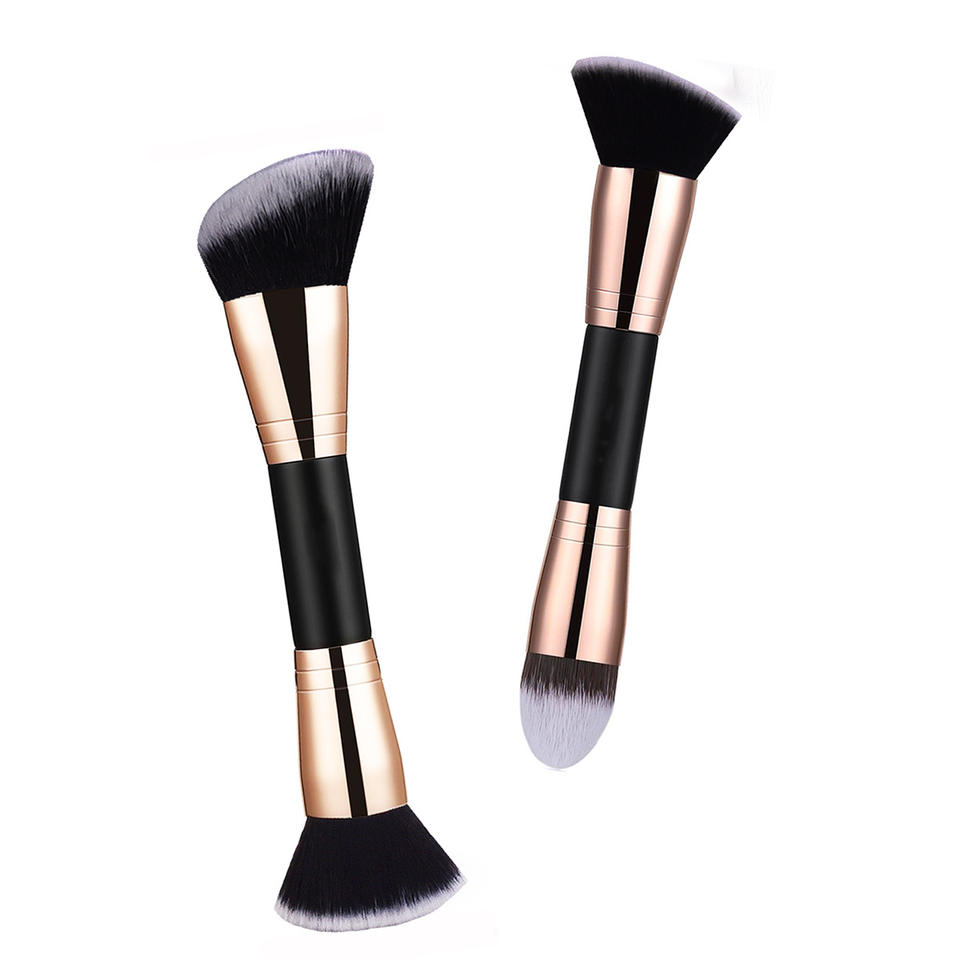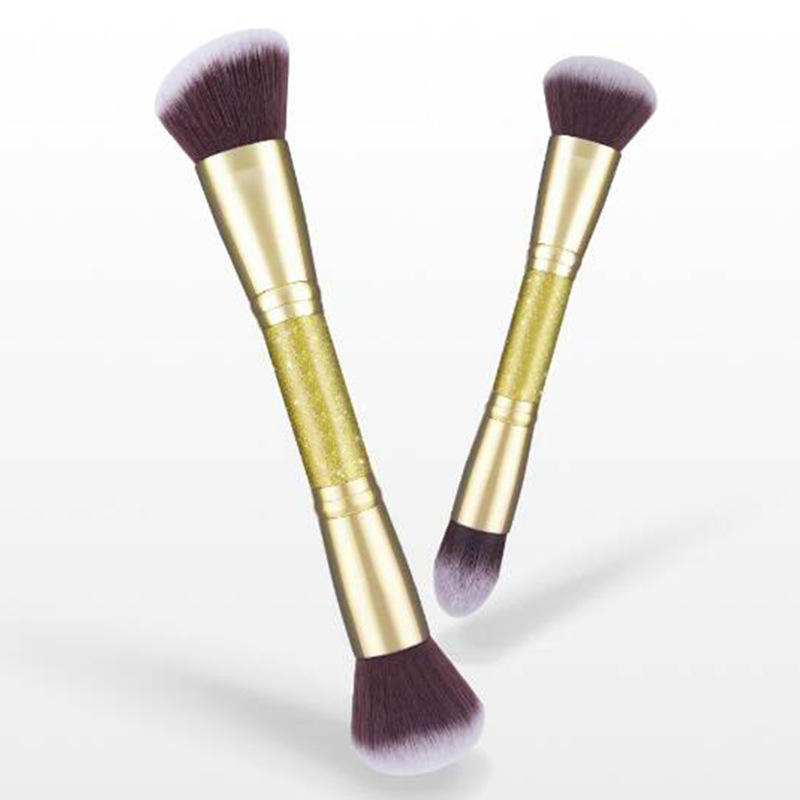 2ชิ้นแปรงทาแป้งรองพื้นแบบหัวสองชั้นชุดนาฬิกาทรายแปรงแต่งหน้ามืออาชีพหรูหราแบบวีแกน
