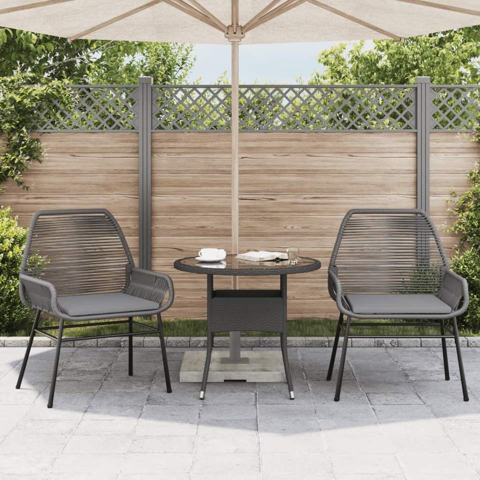 เก้าอี้โพลีหวายพร้อมหมอนอิงสีเทา2ชิ้น