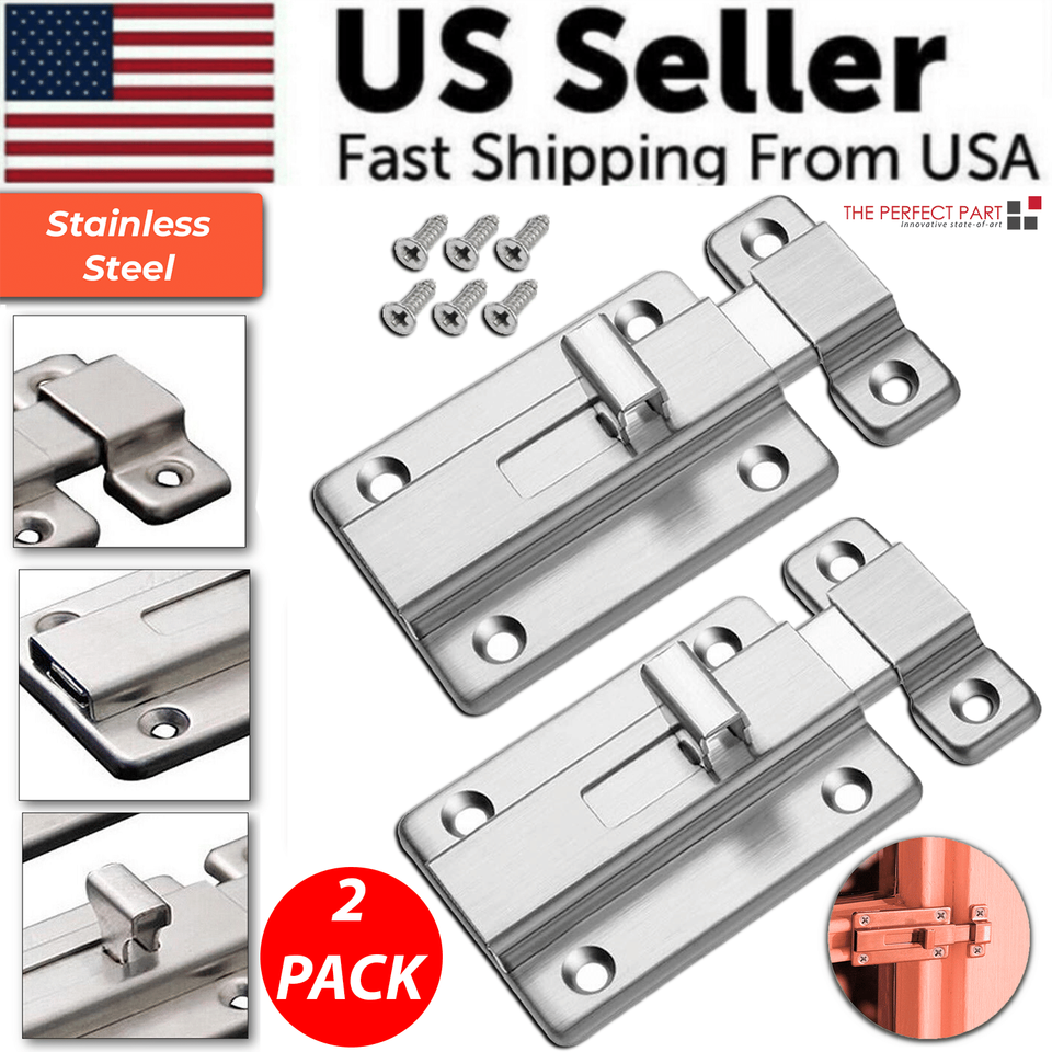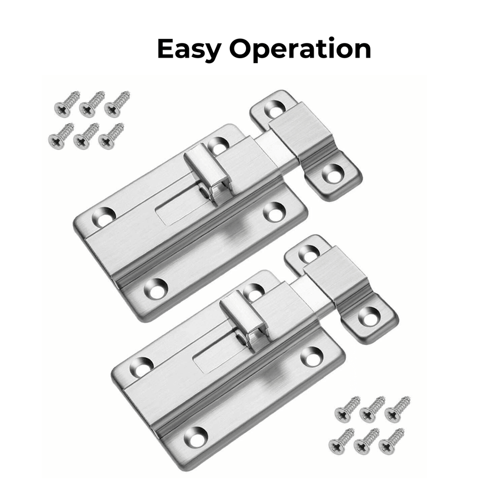 กลอนประตูไร้กุญแจ2ชิ้นสลักสแตนเลสสำหรับประตูบานเลื่อนสีเงินล็อคเฟอร์นิเจอร์