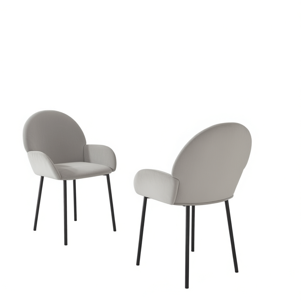 เก้าอี้รับประทานอาหารกำมะหยี่ทันสมัย ขาโลหะหุ้มเบาะสีเทา เฟอร์นิเจอร์บ้านร่วมสมัย ชุด 2 ตัว