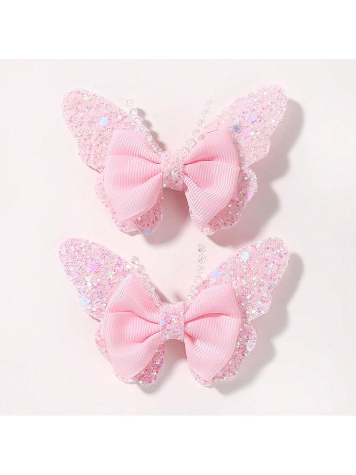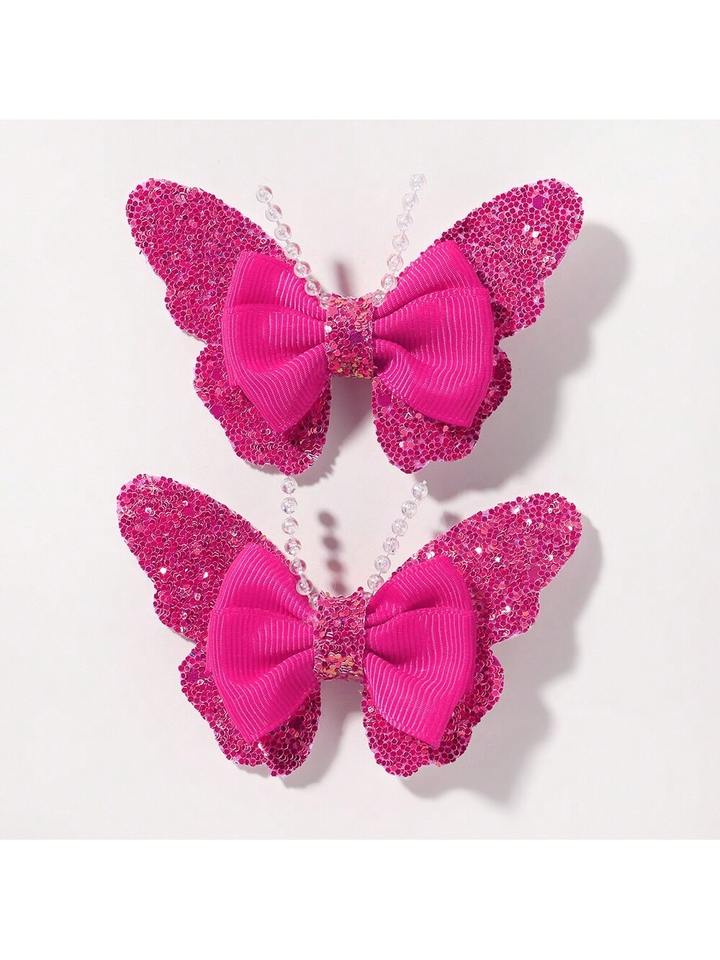 กิ๊บติดผมรูปผีเสื้อแฟชั่นน่ารักแบบใหม่ 2 ชิ้น สำหรับเด็ก ผ้าเนื้อนุ่ม ลายการ์ตูน เครื่องประดับผม