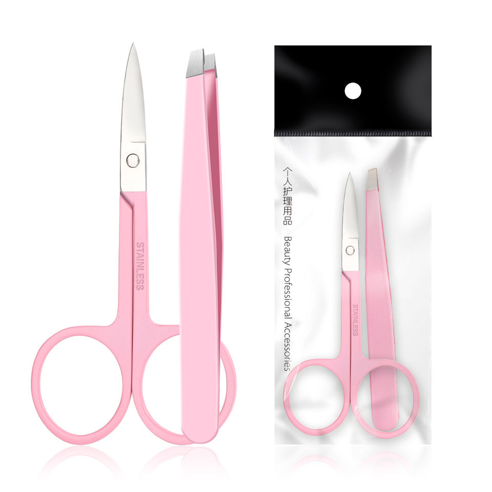 ชุดปากคีบคิ้วสเตนเลสสตีลความแม่นยำสูง2ชิ้นเครื่องมือความงามประจำวันพร้อมกรรไกรโค้งเคสหนังสำหรับถอนขนคิ้ว