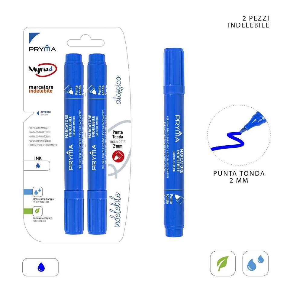 ปากกามาร์กเกอร์ถาวรสีน้ำเงินทรงกลม2มม. หมึกสีโลโก้ตามสั่งสำหรับเขียนเครื่องหมายสีกระดาษ