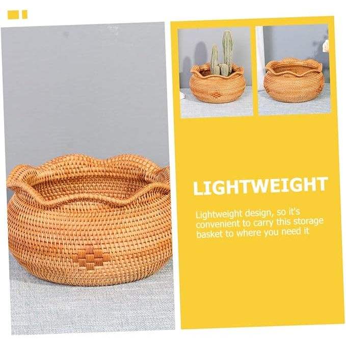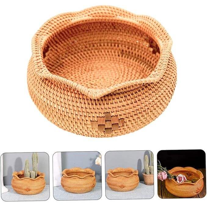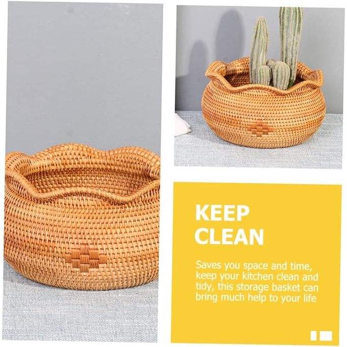 ตะกร้าหวายสานธรรมชาติแบบชนบท2ชิ้นสำหรับเก็บของใช้ในครัวเรือนสำหรับใส่ขนมปังขนมผลไม้