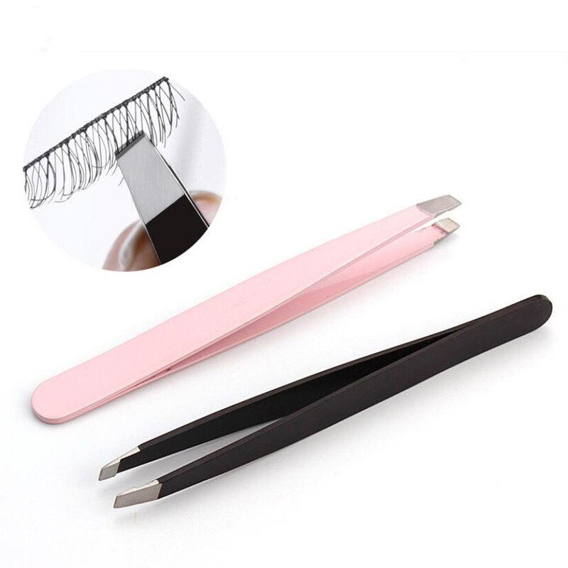 ชุดแหนบสแตนเลส 2 ชิ้น ขนาด 9.6 ซม. ปลายเฉียง ปลายแหลม ปลายแบน สีแดงกุหลาบ สีดำ สำหรับกำจัดขน