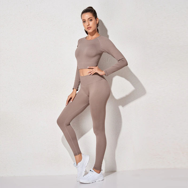 เซ็ตชุดออกกำลังกายไร้ตะเข็บสำหรับผู้หญิงชุดออกกำลังกายสุดเซ็กซี่ชุดเล่นกีฬายิมกลางแจ้งชุดออกกำลังกายพร้อมบรา2ชิ้น