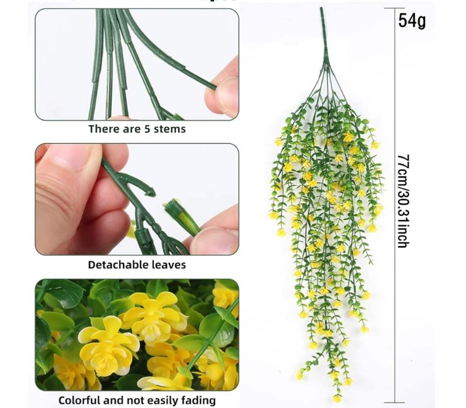 2ชิ้นการจำลองพืชยูคาลิปตัสปลอมแขวนดอกไม้ป้องกันรังสียูวีดอกไม้ลาเวนเดอร์เทียมตกแต่งในร่มกลางแจ้ง