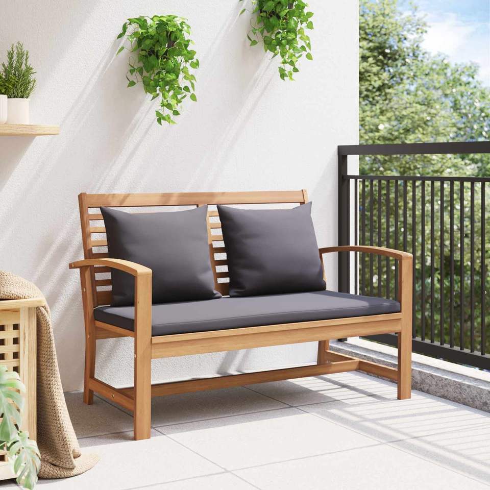ม้านั่งไม้สักแท้ 2 ชิ้นพร้อมเบาะรองนั่งสีน้ำตาลและสีเทาเข้ม