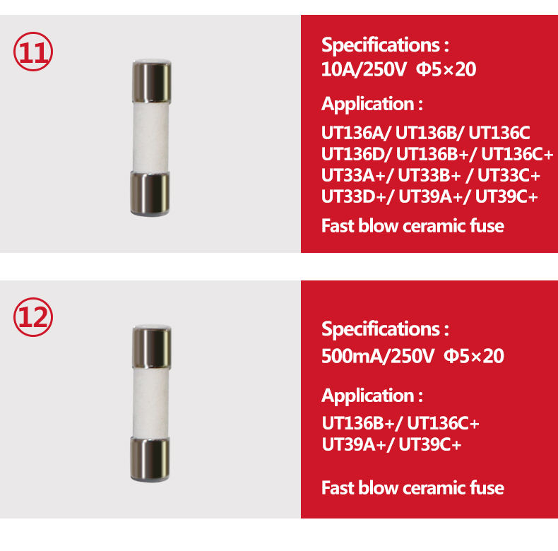 หลอดฟิวส์พอร์ซเลนแบบเร็ว2ตลับสำหรับ UT139มัลติมิเตอร์แบบ UN- T UT39 UT890 UT105ชุด B577 UT171