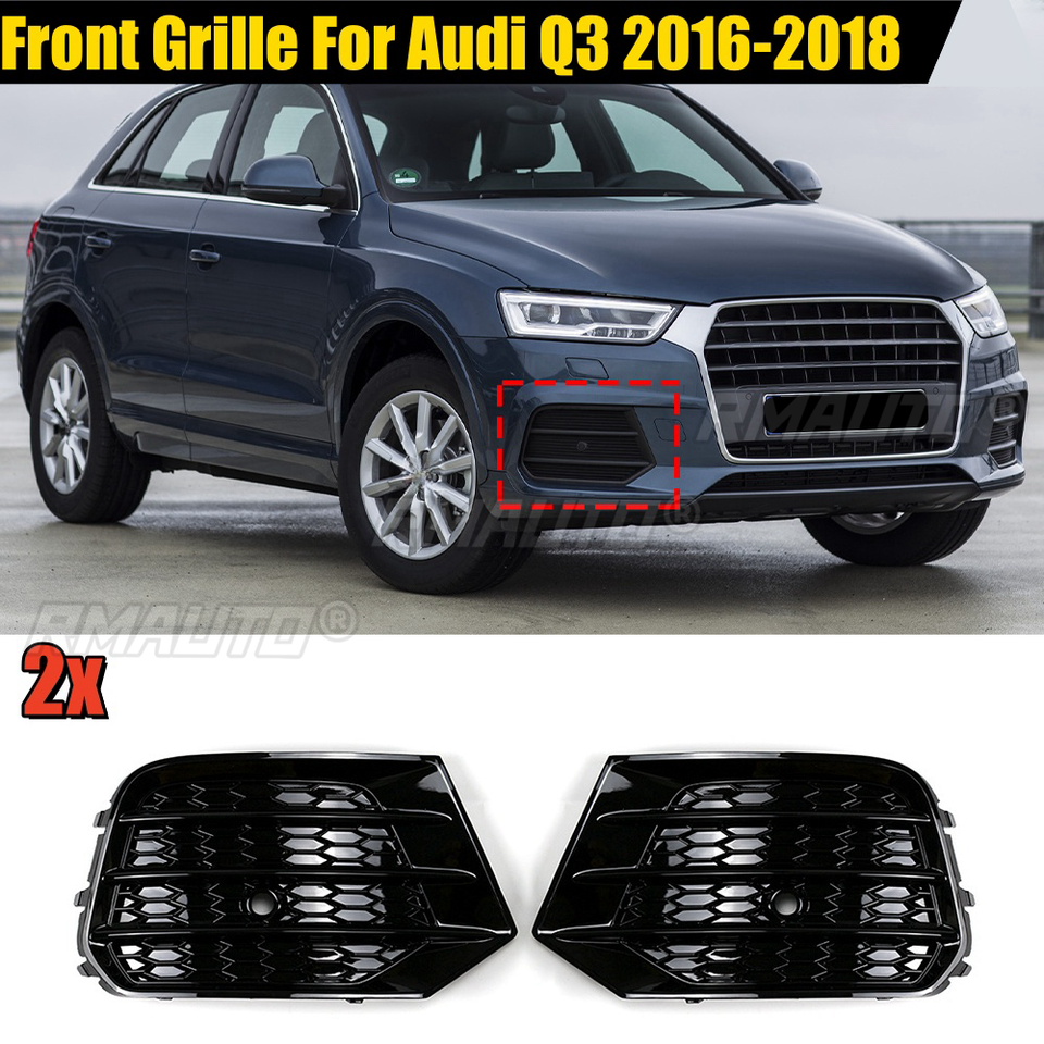 ตะแกรงครอบไฟตัดหมอกหน้ารถยนต์แบบรังผึ้ง 2 ชิ้น สำหรับ Audi Q3 ปี 2016 2017 2018 อุปกรณ์ตกแต่งรถยนต์