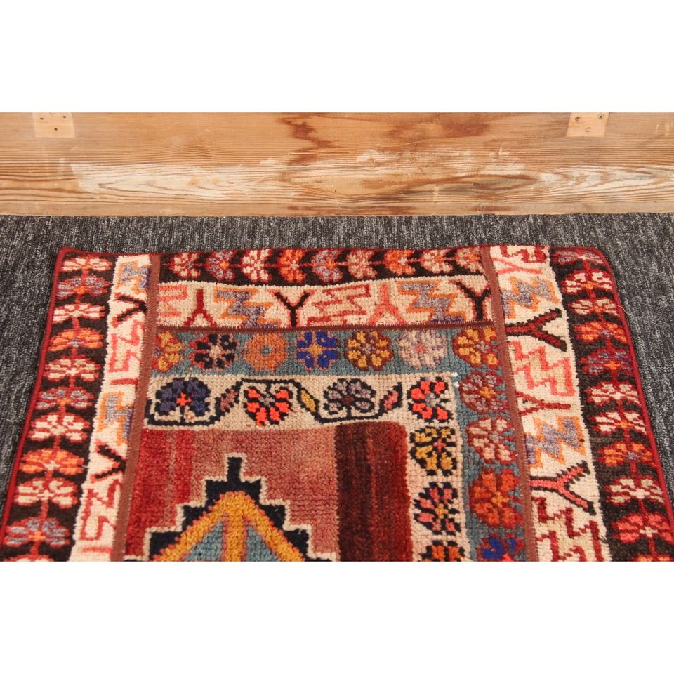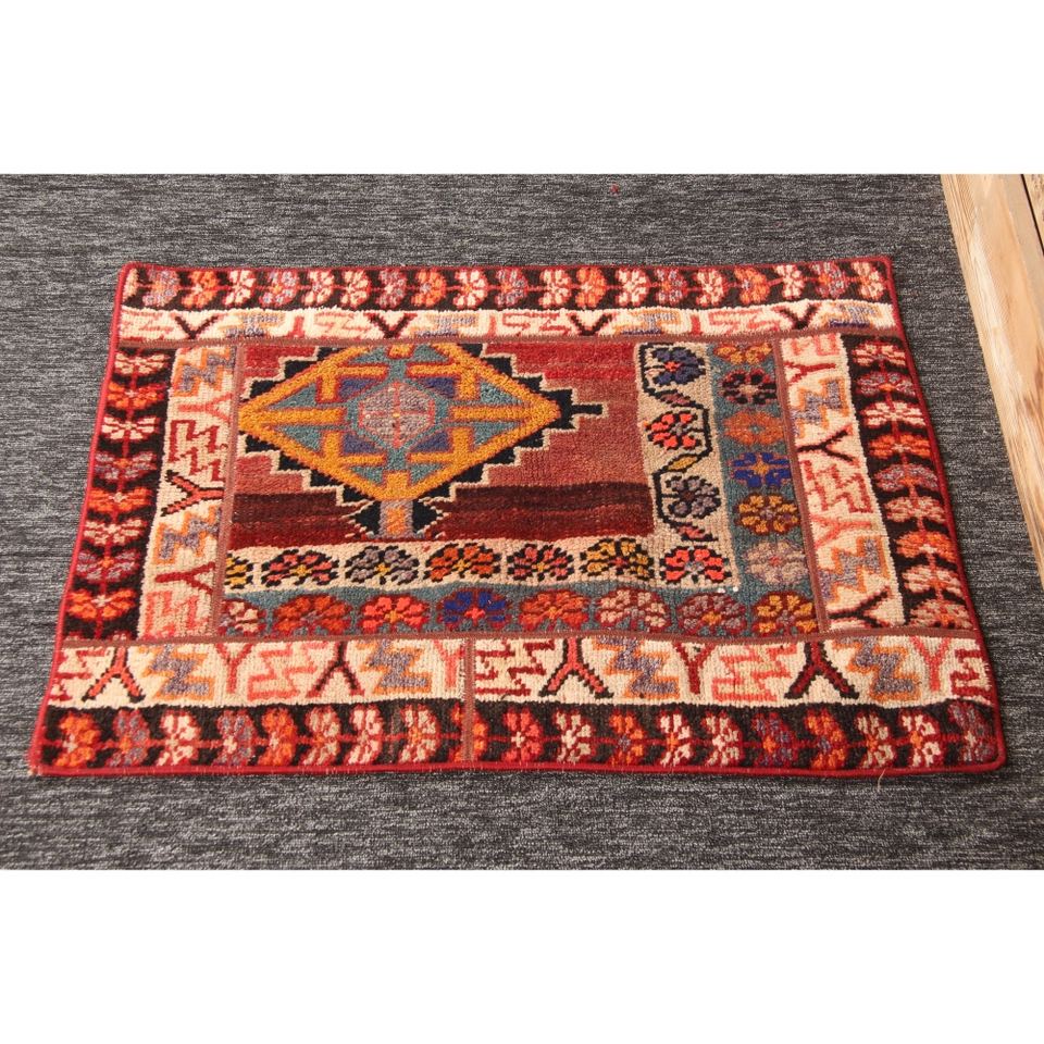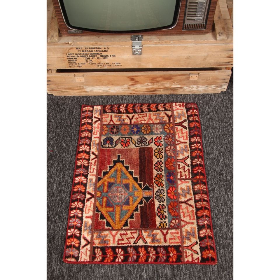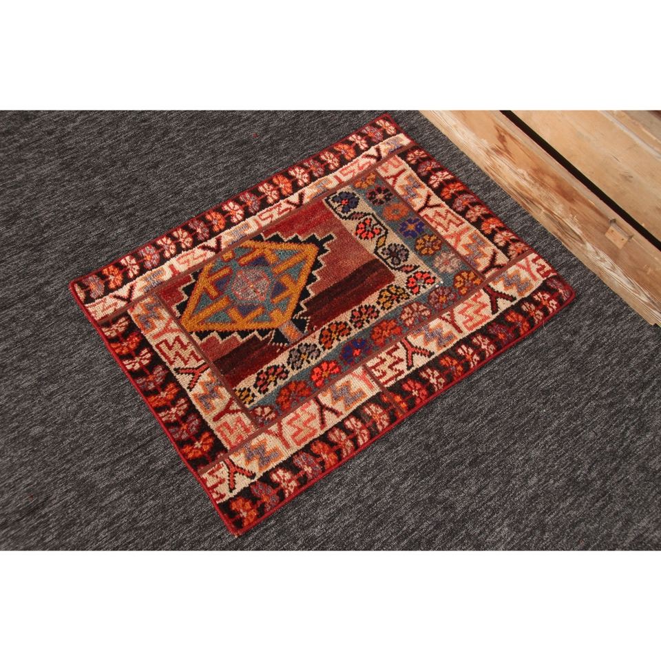 พรมตุรกีวินเทจขนาดเล็ก 2x2.8 ฟุต ลายเรขาคณิตสีแดงพร้อมลวดลายดอกไม้