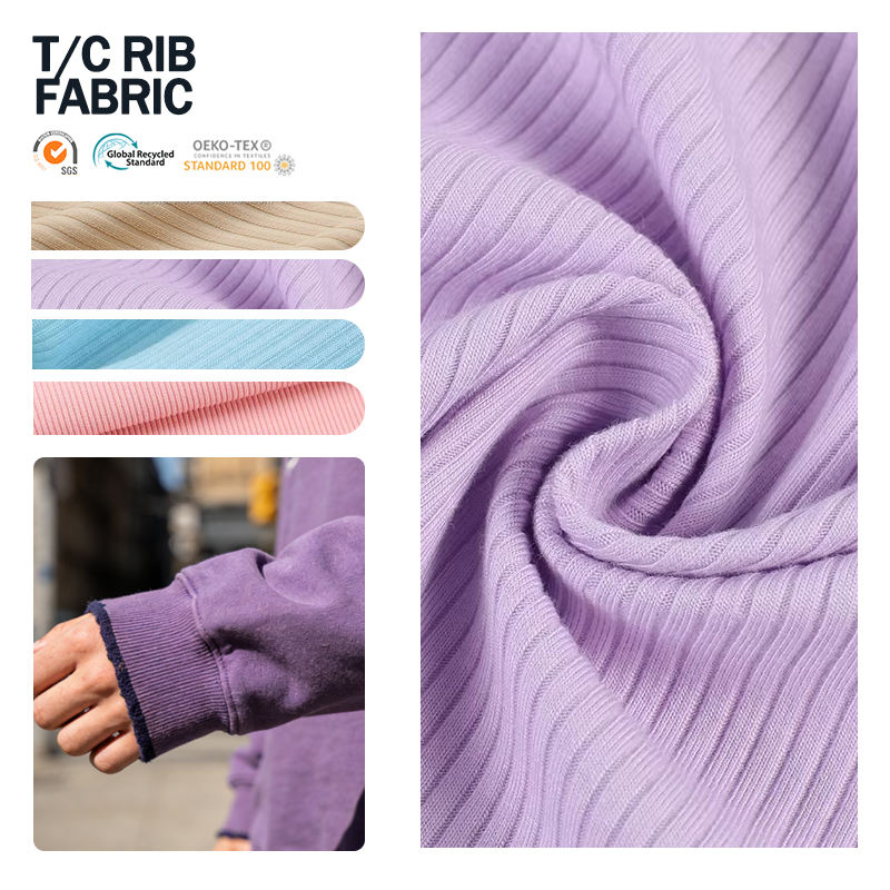 ผ้าคอตตอนริบถัก 2x2 ผสมโพลีเอสเตอร์ยืดได้ สำหรับเสื้อแจ็คเก็ตบอมเบอร์เด็ก แขนเสื้อเชิ้ต