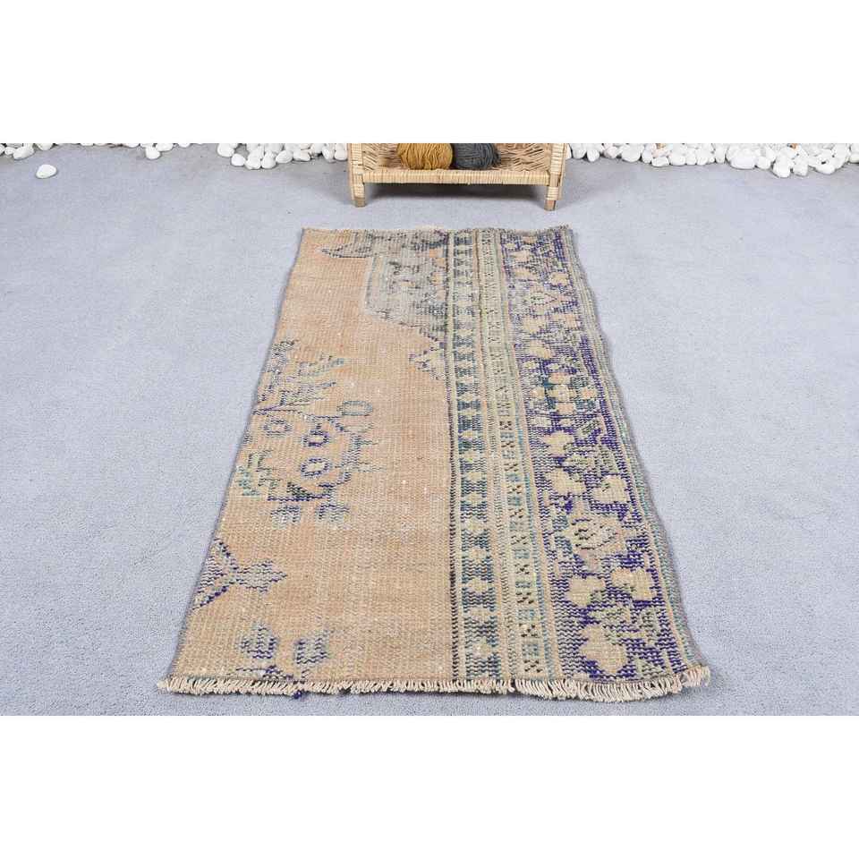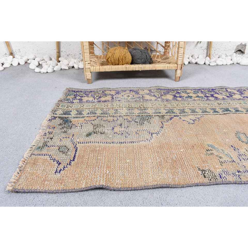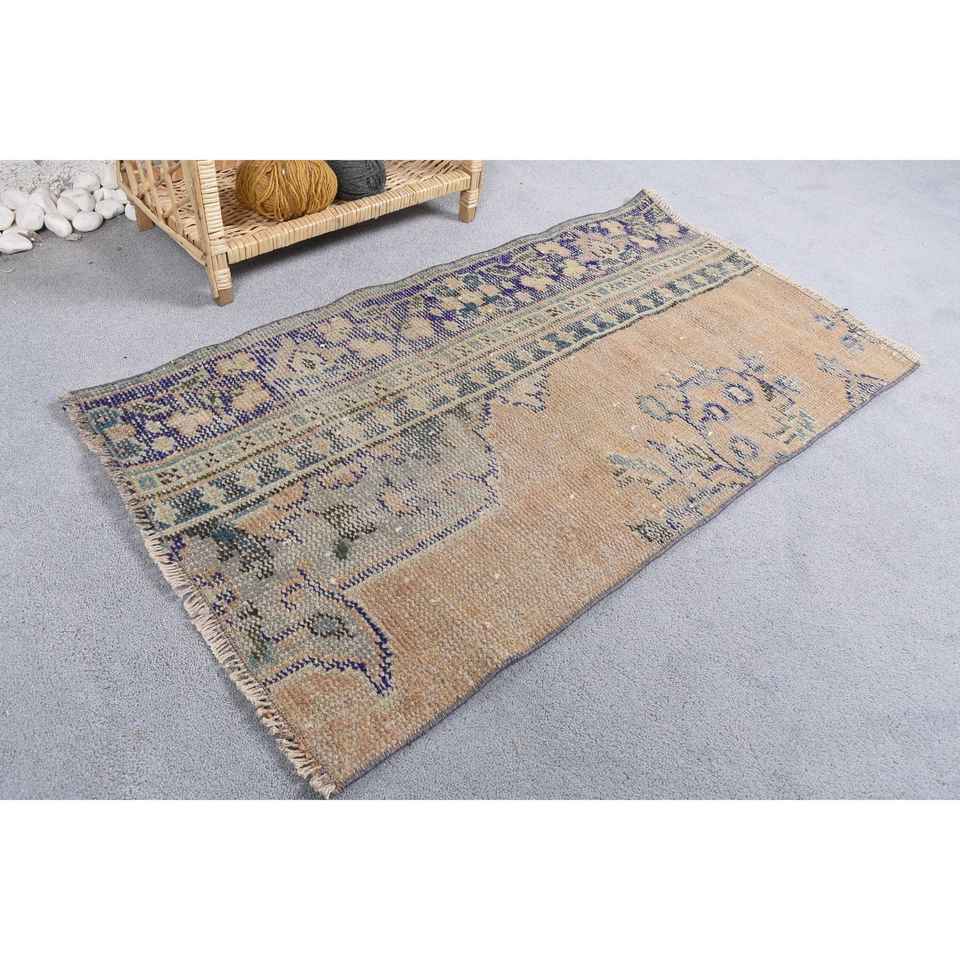 พรมขนาด 2x3.5 ฟุต, พรมวินเทจ, พรมขนสัตว์ลายดอกไม้สีเบจสไตล์ตุรกี